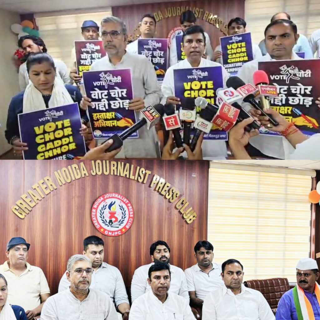 एनसीआर लाइव : ग्रेटर नोएडा। जिला कांग्रेस कमेटी गौतमबुद्ध नगर ने बुधवार, 17 सितंबर 2025 को ग्रेटर नोएडा जर्नलिस्ट प्रेस क्लब में पत्रकार वार्ता आयोजित की। इस अवसर पर जिला कांग्रेस अध्यक्ष दीपक भाटी चोटीवाला ने बताया कि शीर्ष नेतृत्व के निर्देशानुसार आज से जिले में “वोट चोरी” हस्ताक्षर अभियान की शुरुआत कर दी गई है। जिला कांग्रेस ने साफ किया कि यह अभियान सिर्फ राजनीतिक लड़ाई नहीं, बल्कि लोकतंत्र को बचाने की मुहिम है।