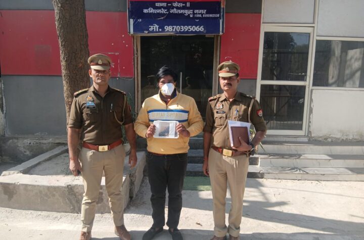 नोएडा थाना फेस-2 पुलिस द्वारा हर्ष फायरिंग करने वाला वाँछित अभियुक्त गिरफ्तार,कब्जे से 1 अवैध पिस्टल व 1 जिंदा कारतूस बरामद।