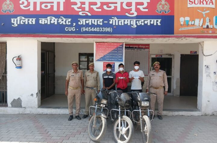 सूरजपुर पुलिस ने 3 वाहन चोरों को किया गिरफ्तार,कब्जे से चोरी की 3 मोटरसाइकिल व 2 अवैध चाकू बरामद।